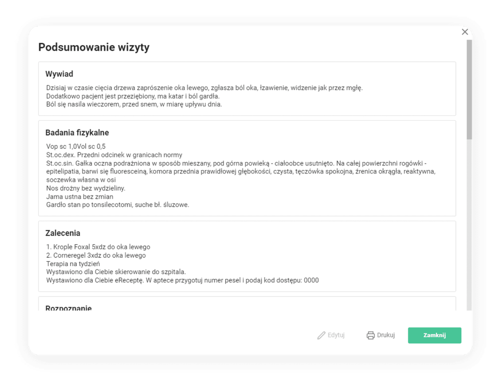 Aplikacja zapewnia pełną integrację z systemami NFZ, P1, eWUŚ i ZUS, posiada sprawdzony moduł Bazy Leków Pharmindex, a także umożliwia wygodne raportowanie zdarzeń medycznych do systemu P1. Intuicyjne szablony wizyt zapewniają z kolei szybszą i efektywniejszą pracę. Warto też dodać, że rejestracja pacjentów realizowana jest bez pobierania prowizji - niezależnie od ich liczby.